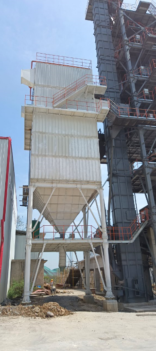 高效布袋式除塵器,采用離線清灰脈沖除塵技術,將制砂過程中產生的粉塵收集到石粉倉中,除塵效率高達99%;