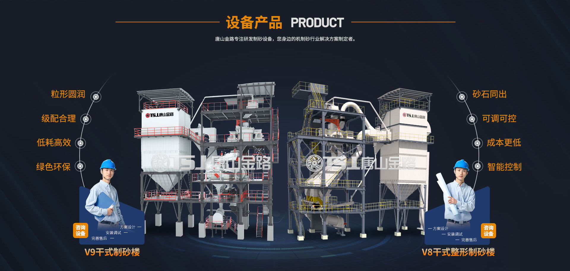 唐山金路作為一家集研發(fā)、生產(chǎn)、銷(xiāo)售、服務(wù)于一體的制砂機(jī)械設(shè)備企業(yè),一直致力于環(huán)保型破碎制砂設(shè)備的研發(fā)與生產(chǎn),現(xiàn)建有年產(chǎn)100萬(wàn)噸的機(jī)制砂生產(chǎn)實(shí)踐基地。公司自主研發(fā)的V8干式整形制砂樓、V9干式制砂樓,具有綠色環(huán)保、能耗低產(chǎn)量高、智能控制等特點(diǎn),產(chǎn)出的機(jī)制砂級(jí)配合理、粒形圓潤(rùn),是制砂生產(chǎn)企業(yè)的理想產(chǎn)品。